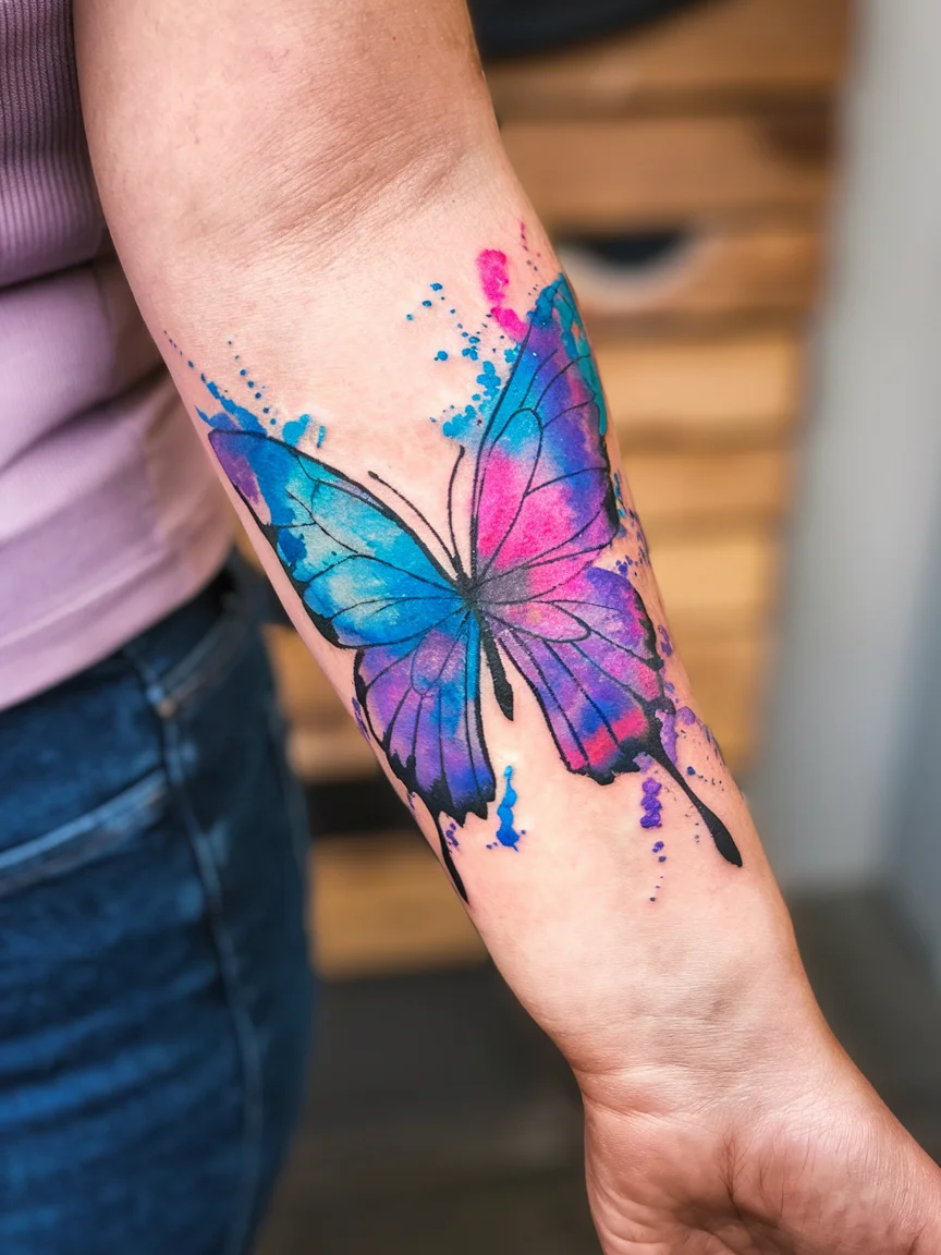Watercolor tattoos are all the rage right now, and for good reason! This style gives the butterfly a dreamy, ethereal quality that’s simply gorgeous. The blending of colors mimics the delicate nature of a butterfly’s wings, creating a soft and feminine look. It’s perfect for those who want something colorful but not too bold.